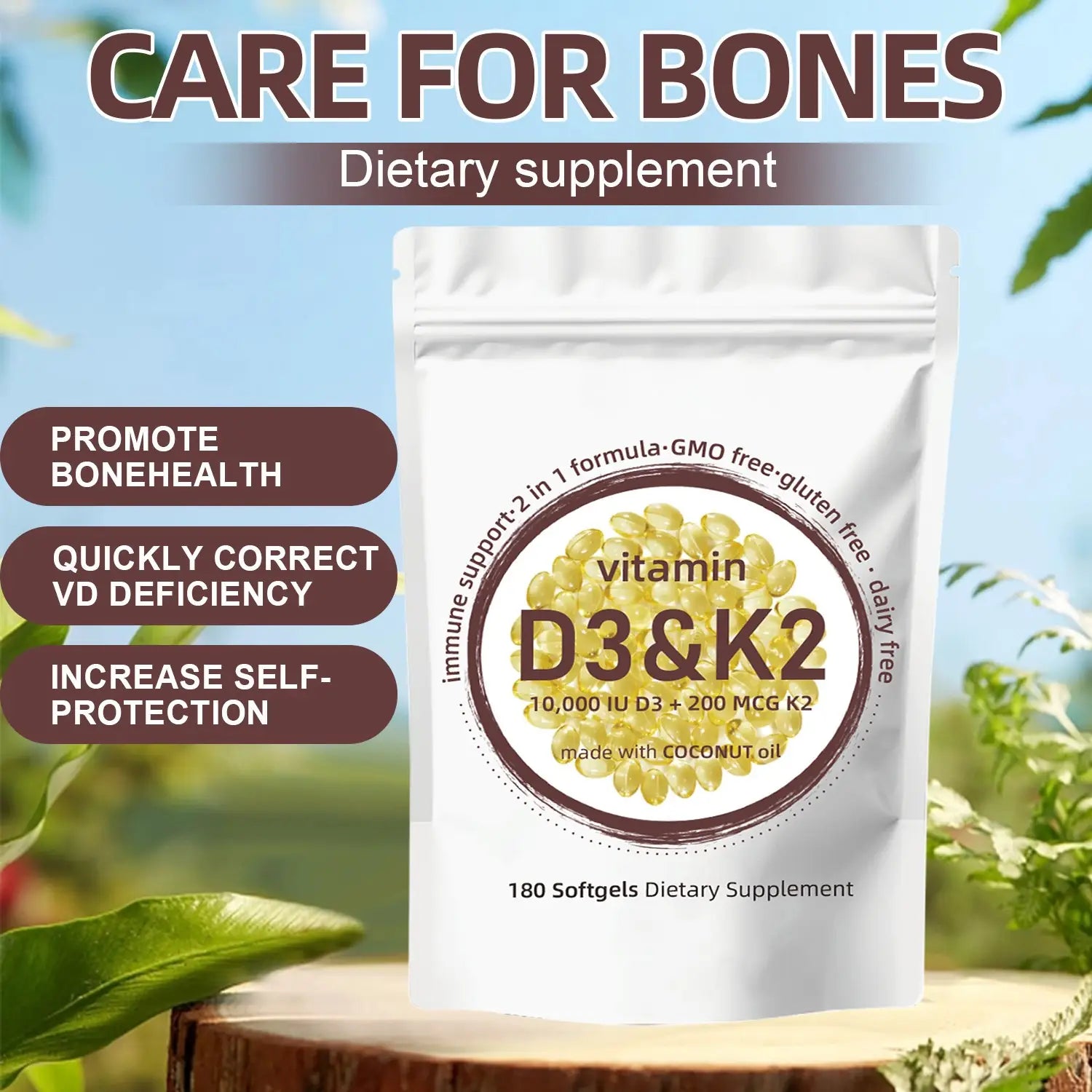• Vitamin D3 (Cholecalciferol, 10,000 IU): Known as the "sunshine vitamin," D3 is crucial for promoting the absorption of calcium and phosphorus—the fundamental building blocks of strong bones. It plays a vital role in bone mineralization, muscle strength, and overall skeletal health.