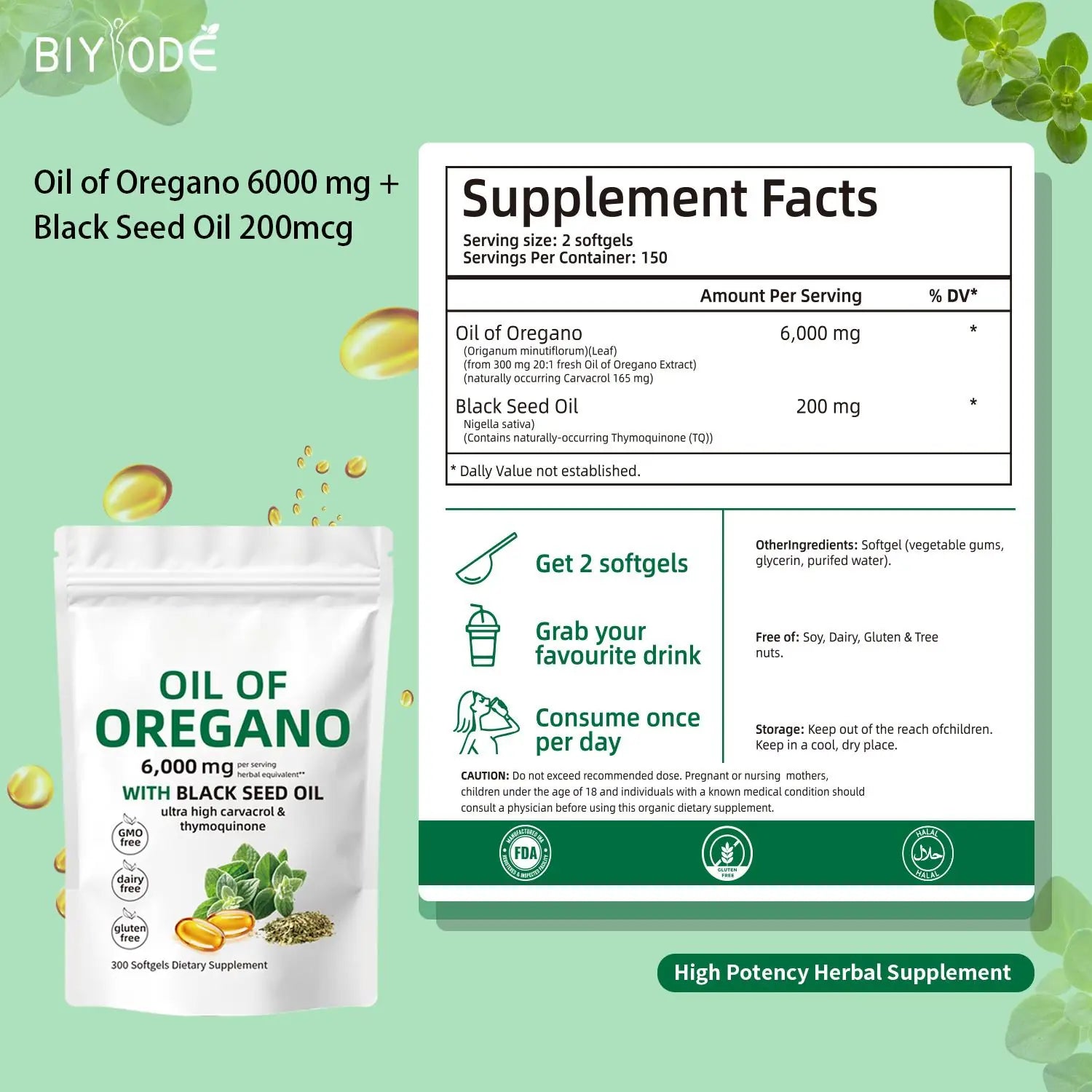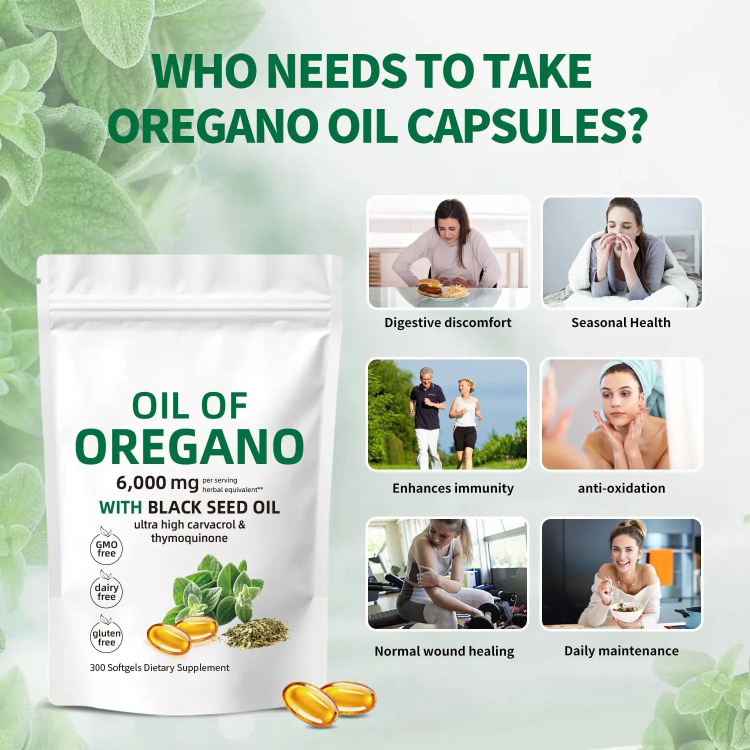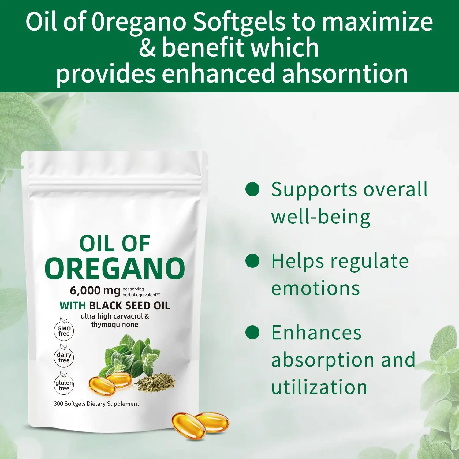 • Main Ingredients: Oil of Oregano (6000mg), Black Seed Oil (200mg)